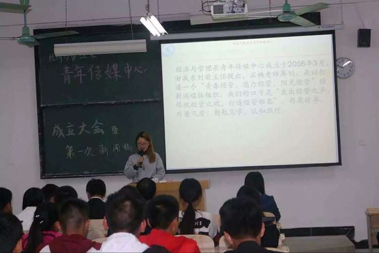 10月13日,在微凉的秋风中,第一届经济与管理系青年传媒中心正式成立。经济与管理系青年传媒中心指导老师石畅老师,经济与管理系分团委学生会宣传部部长李佳莲出席本次成立大会。