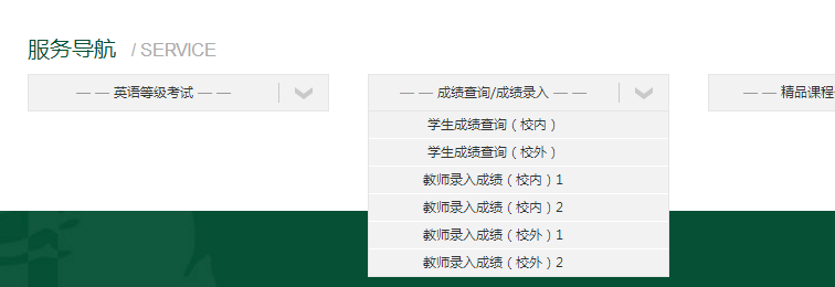 第二步,在教务处主页最后的 “服务导航”模块中选择“成绩查询/成绩录入”(如图所示),可进入教务管理系统;