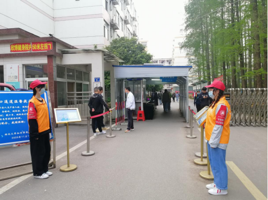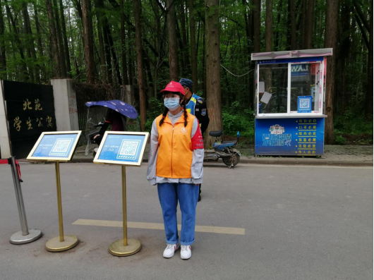 为预防疫情的扩散,志愿者们自始至终坚守在校园防疫第一线。值班期间,不厌其烦地提醒并重复着“同学,请往这边走。”“你好,请扫下二维码,出示签到荚。” 他们不辞辛苦,尽职尽责的坚守在各个岗位上。