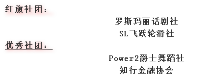 祝贺以上社团获得“红旗社团”、“优秀社团”的称号,比起获誉那一刻的喜悦,更加长久留在心中的,是为之全心投入的日夜,衷心地祝愿挂靠在我院红旗社团的发展能够迈上一个新台阶。