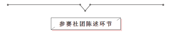 参赛社团依次进行陈述环节,各社团的答辩人通过PPT展现回顾在过去一年取得的成绩和成就,汇报社团在组织建设,社团活动,服务同学,提高素质,各项荣誉,未来展望等方面的做法和成效;以及举办的具有影响力的社团活动,来展示社团的缤纷活力,详细介绍该团支部的发展,解读社团的文化和魅力。