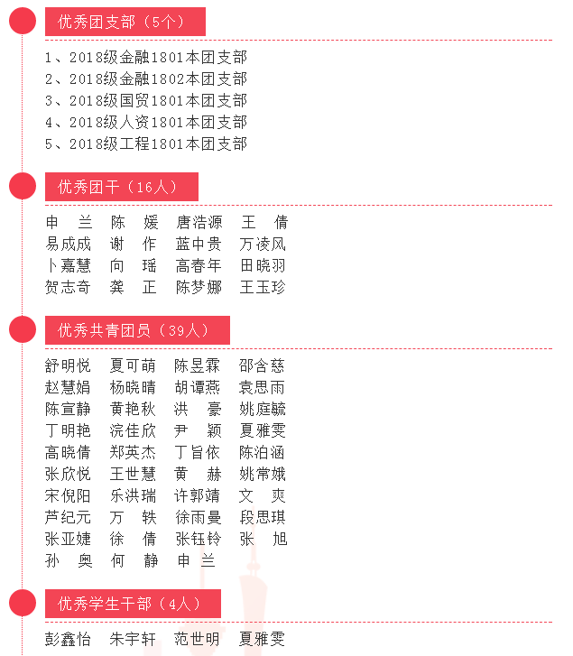 为此yl9193永利集团分团委进一步进行工作部署,迅速展开一系列五四评优工作,以下是关于经管学院优秀团支部、优秀团干、优秀共青团员、优秀学生干部名单公示