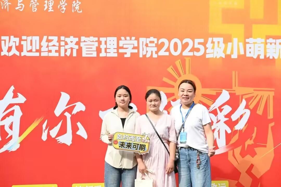 学院还精心打造了以红白为主色调的“经管迎新背景墙”,搭配“有你才经彩”标语,吸引众多新生与家长驻足留念。每位新生获赠“成长礼包”,内含定制帆布包、励志书签和校园明信片,寓意“背负理想,书写华章”。迎新活动尾声,院长在致辞中勉励新生:“愿你们在此学会‘经纶济世’的担当,书写属于自己的星辰大海!”
