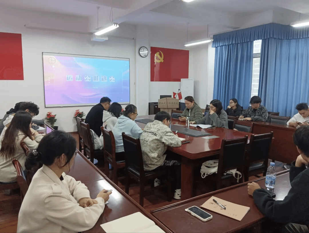 11月6日中午,学院召开多方联席会,艾丽亚老师组织全体学生会成员、运动会负责人及上任主席共细商节。现任主席重申赛事纪律与部门职能,上任主席结合往届经验补充后勤保障要点,如“看台分区管理”“运动员能量补给站设置”等。会议还创新引入“加油方案共创”环节,学生代表提出“实时战况播报”创意,积极投送加油稿,为赛场氛围注入青春活力。五、全员动员:安全参赛彰显风采