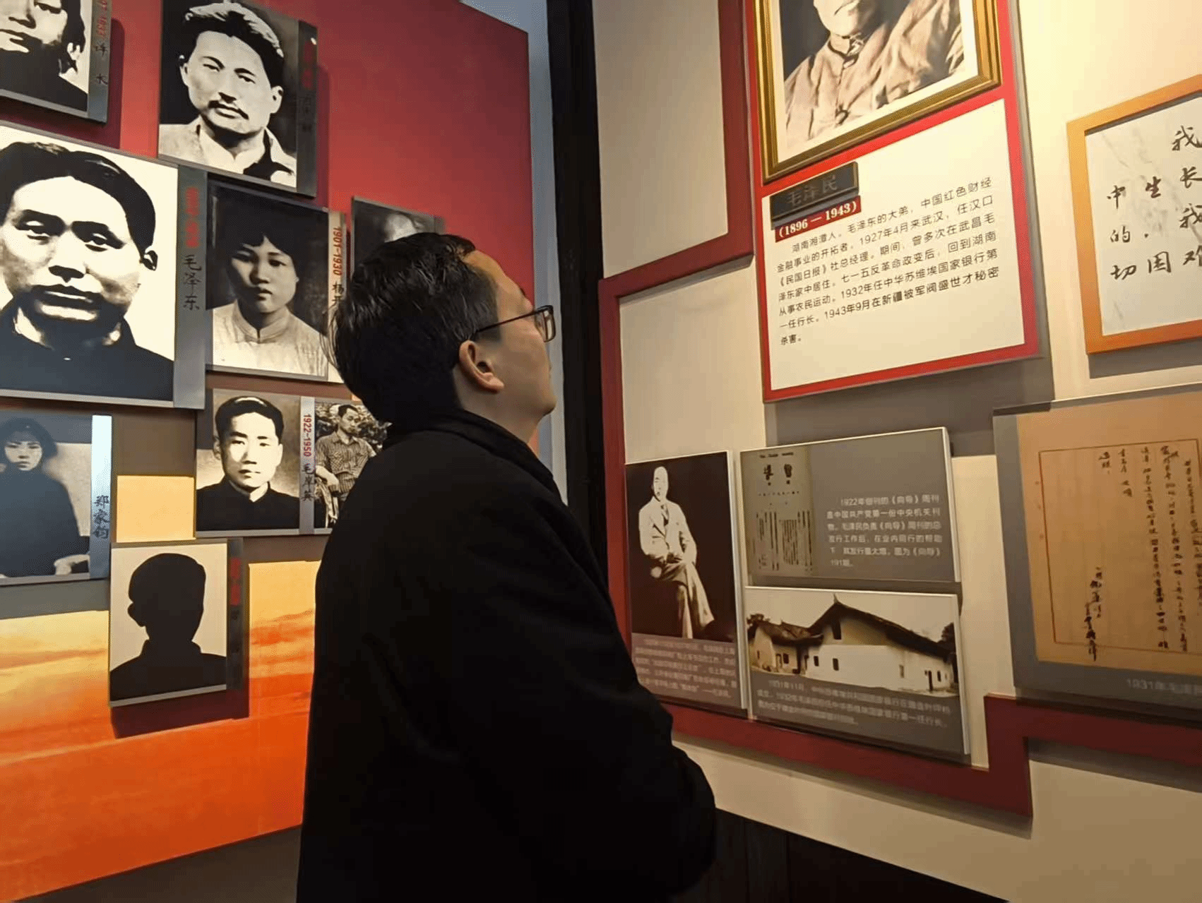 冬日的武汉毛泽东旧居庄严肃穆,青瓦灰墙间承载着厚重的革命记忆。全体党员佩戴党徽,怀着崇敬之心整齐列队,在党总支书记的带领下步入旧居。这座位于武昌都府堤41号的普通民房,是1927年上半年毛泽东在武汉从事革命活动的重要场所,见证了《湖南农民运动考察报告》的诞生,留存了中国共产党早期领导农民运动的光辉足迹。在讲解员的引导下,党员们依次参观了卧室、办公室、会客厅等复原场景,泛黄的手稿、陈旧的桌椅、简陋的油灯等实物展品,无声诉说着伟人当年为革命事业呕心沥血的峥嵘岁月。