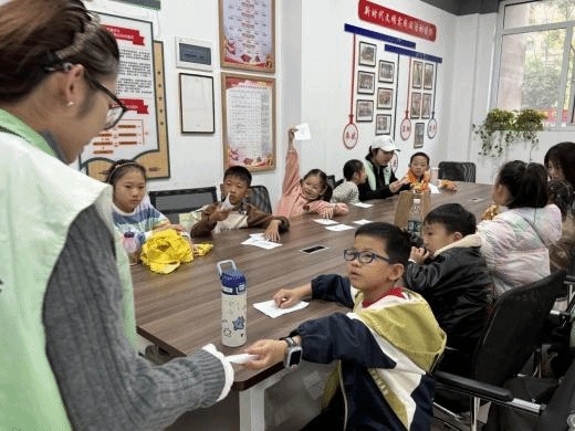 随后,大家一同观看了趣味十足的垃圾分类动画短片。短片里,拟人化的垃圾们历经“分类投放—收集运输—处理再生”的奇妙旅程,原本的“废弃物”摇身一变成为有用的资源,孩子们看得目不转睛,时不时发出“好神奇呀”的惊叹,进一步加深了对垃圾分类意义的理解。短片结束后的有奖问答环节,孩子们更是踊跃抢答,将活动气氛推向高潮,在你一言我一语的互动中,所学知识得到扎实巩固。