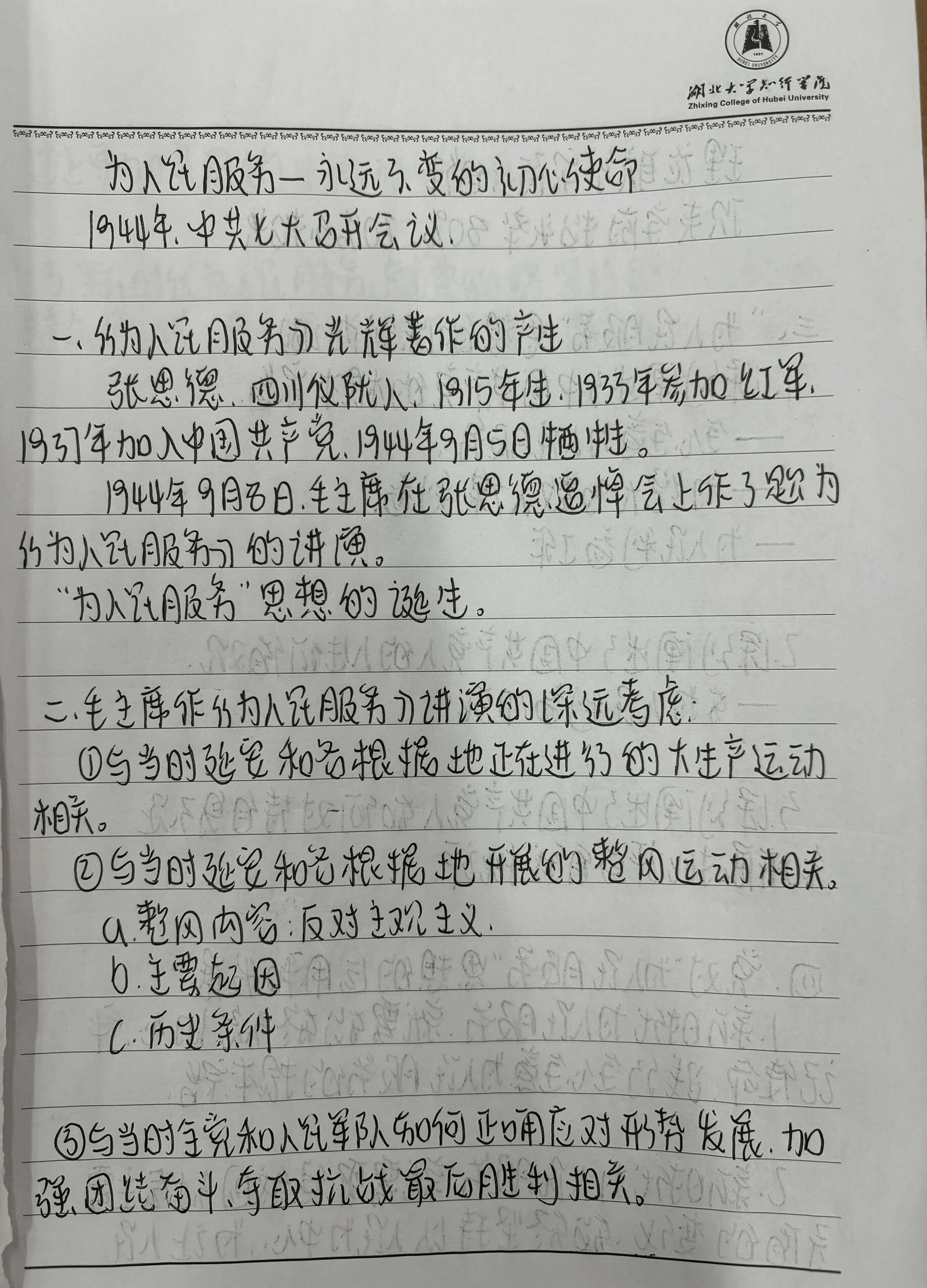 党课伊始,副校长刘张虎通过讲述“张思德”同志的生平事迹,提及毛主席于1944年在张思德追悼会上作《为人民服务》的讲话,指出本次讲演的主题经过毛主席的深思熟虑,并举例说明它与当时延安和各根据地正在进行的大生产运动相关;与当时延安和各根据地开展的整风运动相关;与当时全党和人民军队如何正确应对形势发展,加强团结奋斗,夺取抗战最后胜利相关,以上三个方面就是毛主席《为人民服务》这一光辉著作产生的历史背景。刘副校长谈到要将理论联系实际,鼓励学生带头营造良好的学风校风。