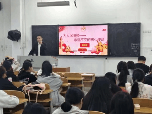 为了锤炼品德修为,强化入党积极分子对中国共产党的正确理解,我院联合外国语学院和人文学院于11月2日17:00在知真楼206教室开展了“为人民服务—永远不变的初心使命”专题党课。本次党课由学校副校长刘张虎主讲,我院第43期党校全体学员参加。