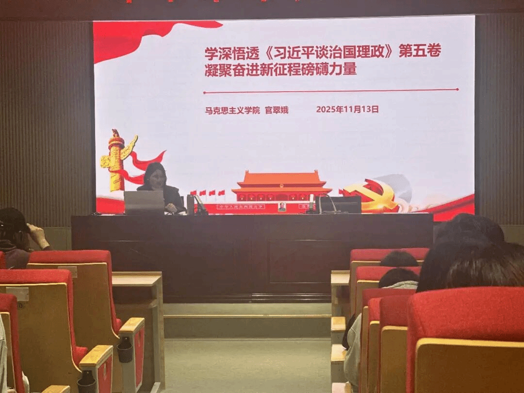 官翠娥教授在开篇指出,《习近平谈治国理政》第五卷是全面系统反映习近平新时代中国特色社会主义思想的权威著作,是新征程上筑牢理想信念、强化理论武装的重要教材。她以“把握重大意义、梳理核心要义、领会实践启示、凝聚奋进力量”四个维度为主线,引导学员深入理解著作内涵。