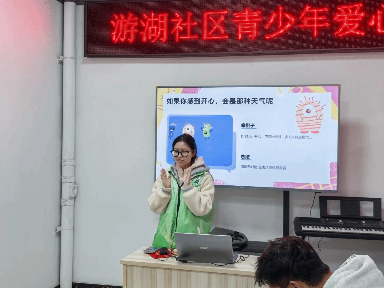 为关注青少年心理健康,提升情绪认知与表达能力,我院志愿服务队于本周六上午再次走进游湖社区爱心学堂,开展了一场以“心灵相约,情绪花园”为主题的心理健康教育活动。通过情绪认知、情景互动与心灵手势舞等形式,引导孩子们认识情绪、表达情绪,学会与情绪友好相处。