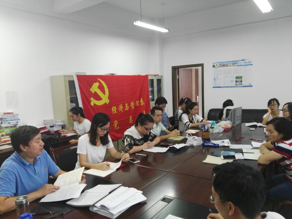 本网讯 11月15日下午,经管系教工党支部在知远楼506办公室召开学习党的十九大精神专题会议,传达学习学院党务会议精神,部署下一阶段学习党的十九大精神的工作。经管系党总支书记刘容主持会议,全体无课教师党员参加会议。