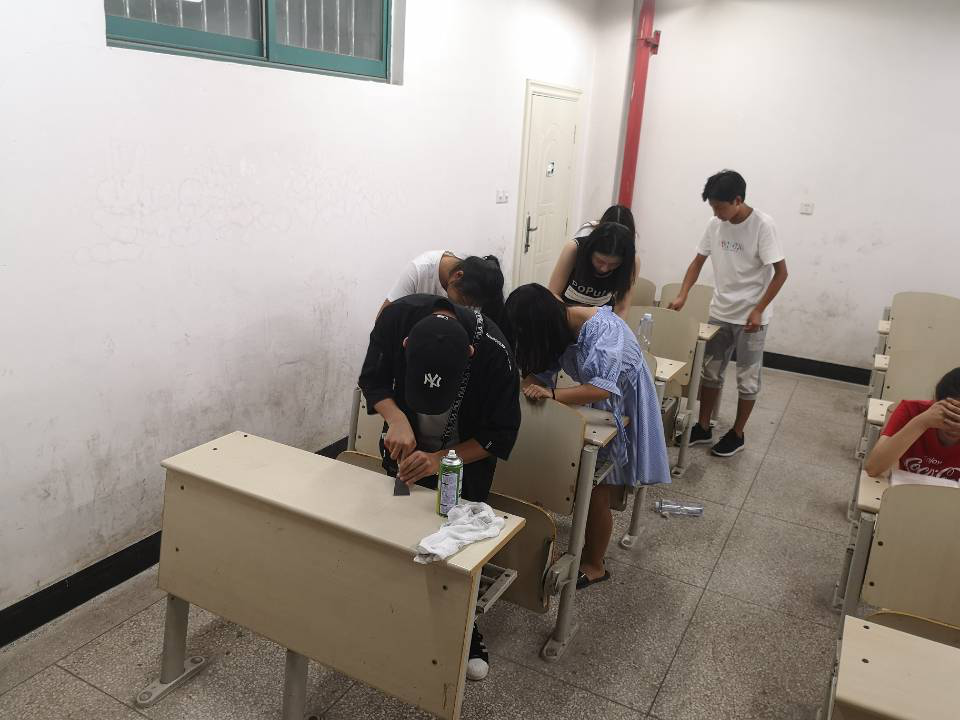 新学期伊始,一切都是崭新的模样,为了创造良好的校园环境,给即将报到的新生和家长留下良好的第一印象,进一步提高同学们的劳动积极性,增强劳动意识,经济与管理系学生党支部积极响应学院要求,在学工处的指导下,经济与管理系党小组于2018年9月3日开始带领我系第28期入党积极分子和预备党员开展了为期一周的“清理校园课桌小广告”的义务劳动,在这几天内,81位成员完成了知新楼1-3楼的“除牛皮鲜”工作,并取得圆满成功。