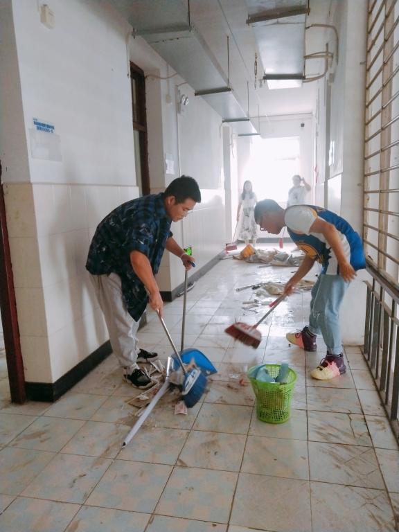 为欢迎知行学院新生入校,为各位新生提供一个舒适干净的住宿环境,2019年9月1日下午两点半我院学生党支部部分成员组成打扫小队前往内八进行了清洁打扫工作。