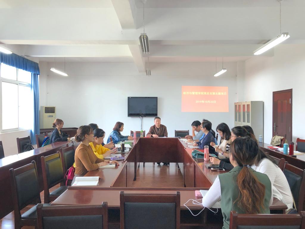 10月23日下午,学院党总支在知远楼401会议室开展主题党日活动。活动包含五项,第一项:奏唱国歌;第二项:重温入党誓词,由支部宣传委员甘露领读宣誓词;第三项:主题文件学习,由党总支部书记刘容书记组织学习;第四项:主题学习讨论发言;第五项:布置《党员“四亮”承诺书》任务。