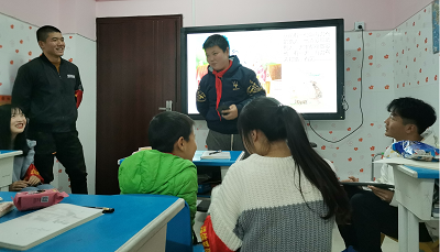 党支部的同学们用PPT演讲的形式为小朋友们带来了雷锋搬砖乐于助人的故事,讲述了梁山英雄救火救人的英勇事迹,告诉小朋友们防范消防火灾的小知识以及有趣的童话故事。在小课堂上,孩子们与党支部同学们积极互动,给党支部同学们讲故事和他们聊天,活动氛围十分融洽。