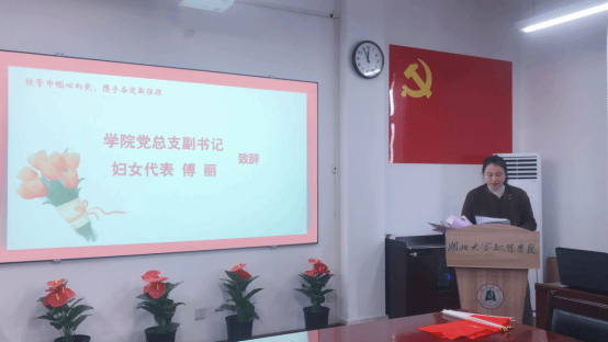 活动伊始,党总支副书记、妇女代表傅丽为活动致辞,她代表学院向奋斗在一线的女教师们表示诚挚的祝福,期待在未来的日子同大家一起继续绽放属于自己的光彩,书写更加精彩的教育篇章。