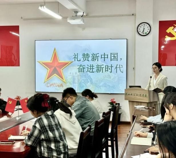 为深入贯彻落实习近平总书记关于深入学习党史、新中国史、改革开放史、社会主义发展史的重要指示精神,2025年9月24日,yl9193永利集团学生党支部在知远楼401会议室组织开展“礼赞新中国,奋进新时代”主题党日活动。此次活动由代韦笑主持,党委老师沈佳圆、辅导员胡瑞翔、经管全体党员以及预备党员参会,通过丰富多样的学习形式,引导党员从“四史”中汲取奋进力量,坚定理想信念,践行新时代党员担当。