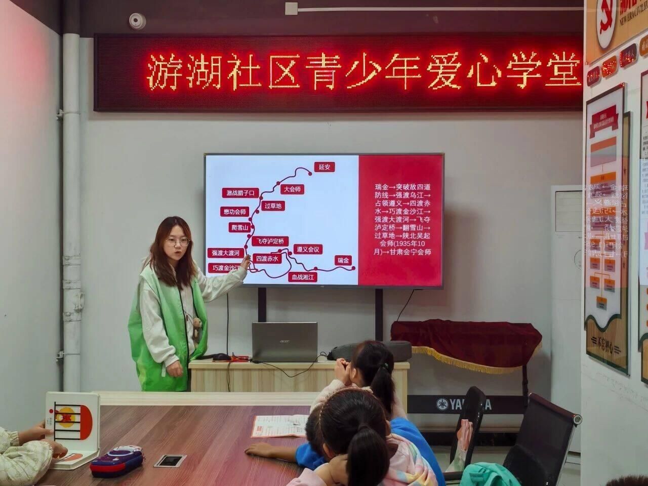 此次游湖社区“爱心学堂”志愿服务活动,不仅是一次简单的历史知识普及,更是一次深刻的精神洗礼。通过讲故事、忆长征、唱红歌、写书信等孩子们喜闻乐见的形式,将爱国主义的宏大主题转化为鲜活可感的体验,不仅让孩子们在潜移默化中铭记了历史、崇尚了英雄,更在他们心中播下了爱国的种子,激发了浓浓的爱国热情与民族自豪感。
