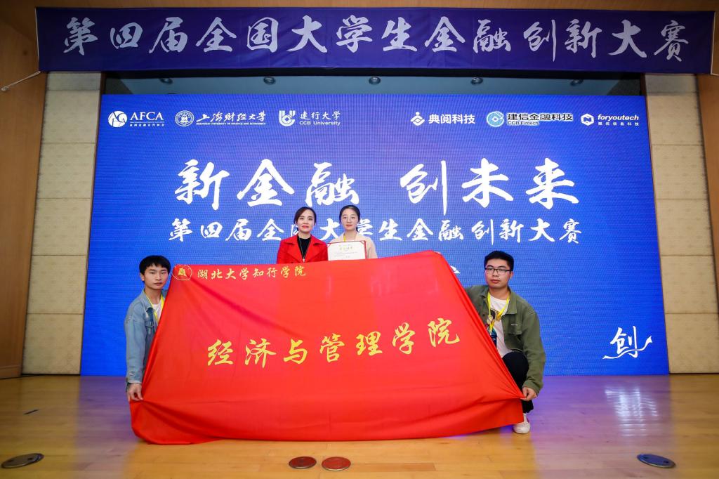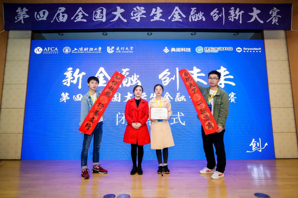 11月23日-24日,由建行大学与上海财经大学联合主办的第四届全国大学生金融创新大赛在沪举行。经管学院金融教研室汪天倩老师带领16级金融学专业周纯和17级金融学专业黄赫、吴鑫磊三位同学参赛,与河北大学、江苏大学、东北财经大学等众多重点高校的学生进行比拼。