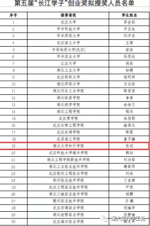 “长江学子”优秀大学毕业生评选活动通过评选表彰在学术创新、自主创业方面成绩突出的优秀学子,发现人才,鼓励学生勇于开拓。活动评选共评选出“长江学子”创业奖30名,“长江学子”创新奖30名。我校自2018年参加该项评选活动。在第四届长江学子评选活动中,2014级学生陈伟荣获创新奖,今年张珂荣获第五届长江学子创业奖。连续两年均有学生斩获该奖项,凸显了我校紧紧围绕应用型转型目标发展任务,开展创新创业工作取得实效。
